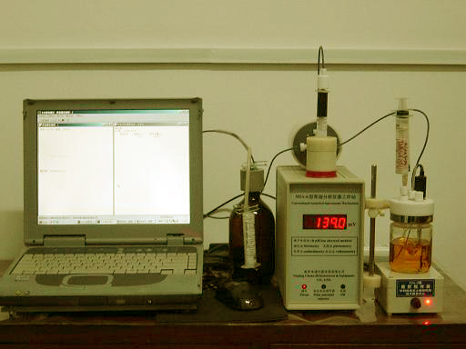 中北大學化工與環(huán)境學院胡老師在科研工作中想利用MIA-6型常規(guī)分析儀器工作站進行離子型表面活性劑水溶液的臨界膠束濃度的測定,要求我們編制一個能夠自動逐步稀釋,自動測定25℃時的電導率,最終給出一條溶液電導率與濃度的關系曲線新的軟件,于2012年3月將MIA-6型常規(guī)分析儀器工作站和應用軟件一起交付使用。由于稀釋的倍數(shù)很大,滴定的容器要求很大,這樣攪拌越來越不均勻,造成測量條件的變化,使測量結果造較大的誤差。同時電極都會被淹沒,無法正常工作。他們想了一個辦法加入幾毫升 ,測量25℃時的電導率后,人工抽走幾毫升,始終保持溶液的體積不變,而濃度在發(fā)生變化。但操作者不能離開實驗,除了感到緊張外,還容易搞錯,精度不高。后來我們建議再加入一個DAB-2數(shù)字自動滴定管,在主軟件的控制下,進行反向工作,自動抽了等精度的測量液,組成了一個全自動的測量系統(tǒng),減輕勞動強度,又提高了測量精度。